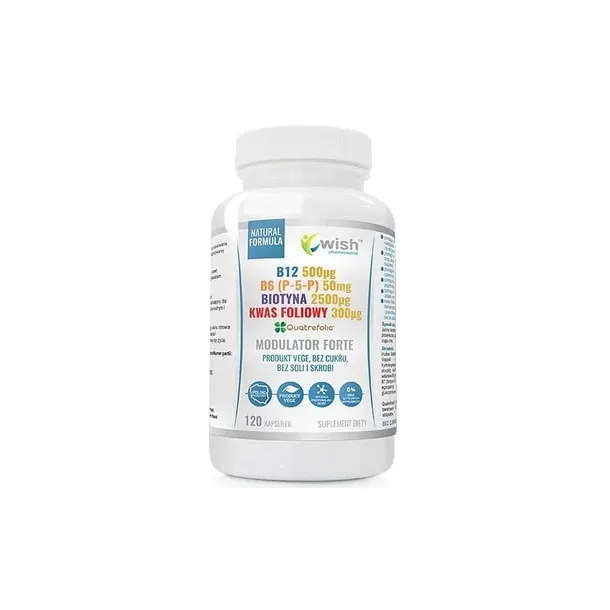 – 500µg witamina B12 ( Metylokobalamina), – 50mg witaminy B6 (Pirydoksalo-5-Fosforan), – 2500µg witaminy B7 (Biotyna) – 300µg aktywnego kwasu foliowego w formie L-metylofolianu wapnia (5-MTHF) Quatrefolic® Quatrefolic® naturalne źródło folianu w opatentowanej postaci. Quatrefolic® charakteryzuje się wysoką rozpuszczalnością w wodzie dzięki czemu jest doskonale wchłaniany przez komórki błony śluzowej, które ułatwiają dostęp do krążenia i krwi.